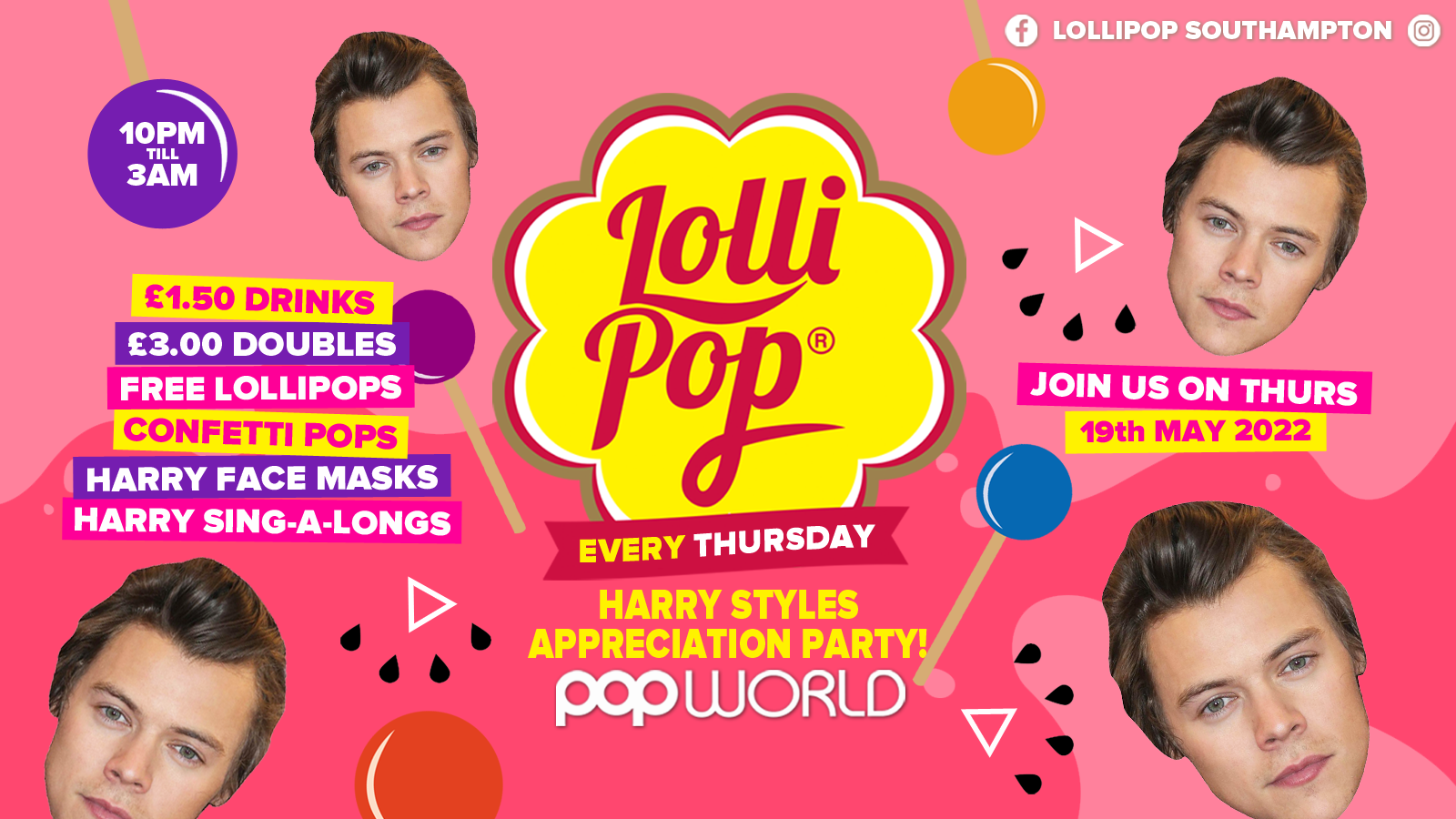 Lollipop Thursdays • Harry Styles Appreciation Party • £1.50 Drinks • Popworld