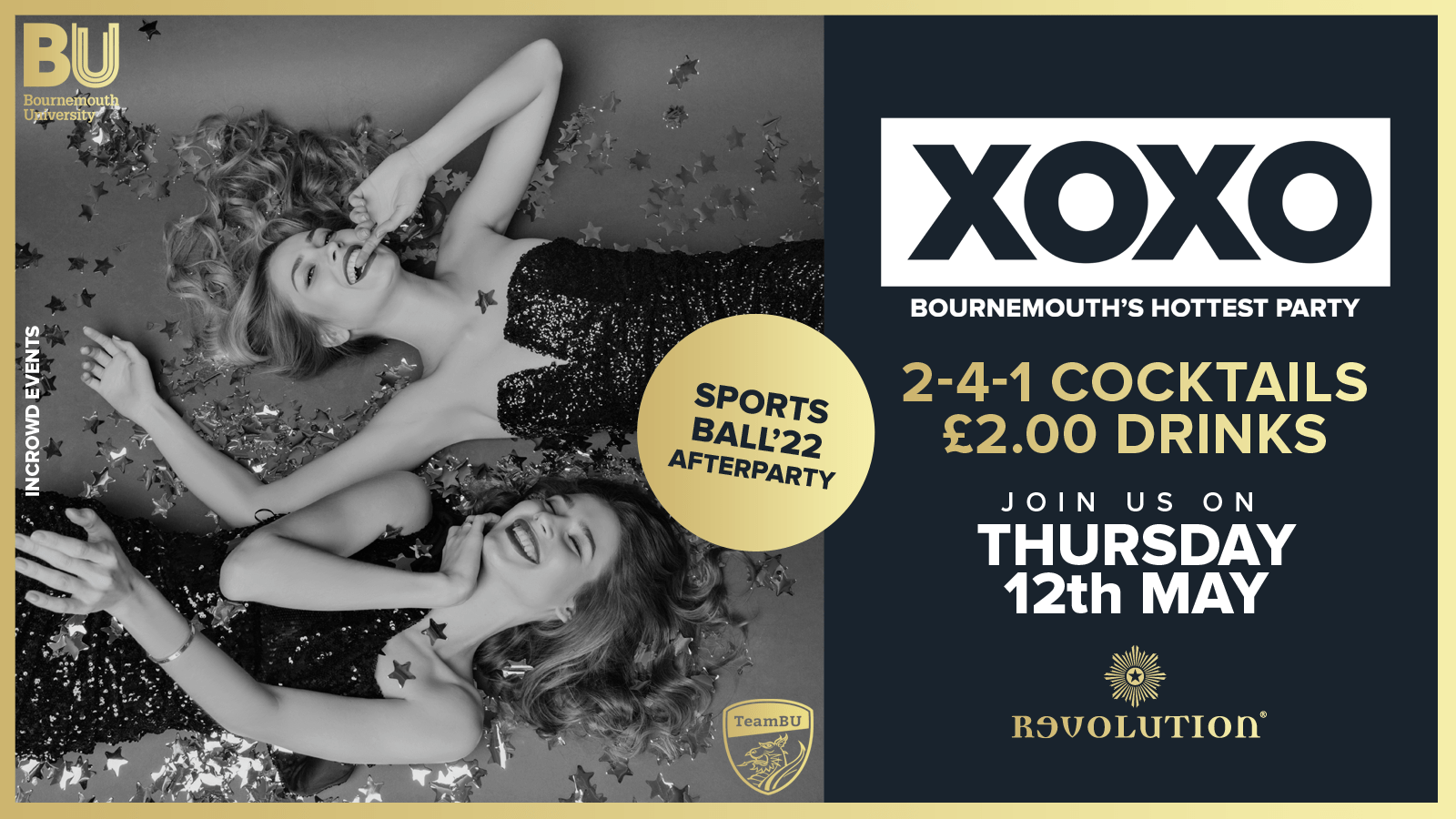XOXO • BU Sports Ball Afterparty • £2.00 Drinks • Revolution